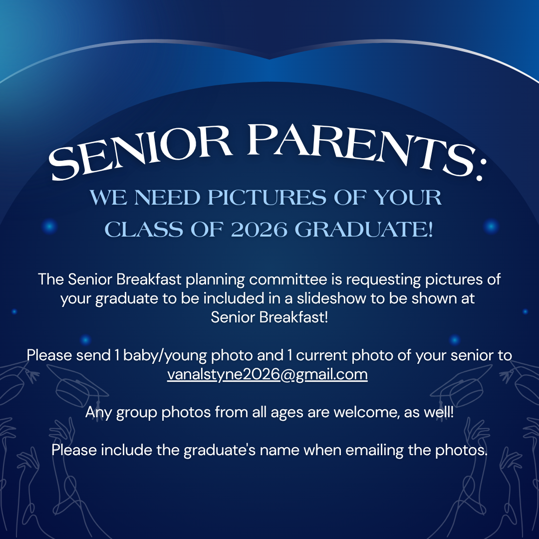 The Senior Breakfast planning committee is requesting pictures of your graduate to be included in a slideshow to be shown at Senior Breakfast!